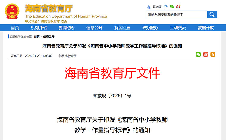 近日,海南省教育廳印發(fā)《海南省中小學(xué)教師教學(xué)工作量指導(dǎo)標(biāo)準(zhǔn)》(以下簡稱《指導(dǎo)標(biāo)準(zhǔn)》),進一步規(guī)范課時基準(zhǔn),保障開齊開足課程。