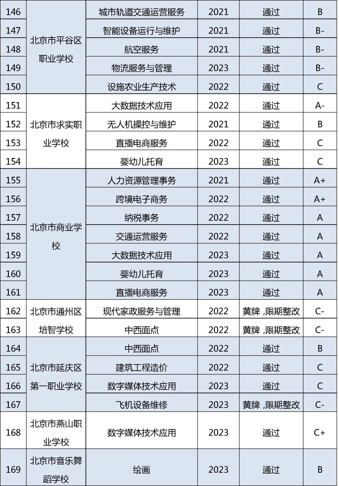 近日,2024年北京市職業(yè)院校近三年新增專業(yè)質(zhì)量監(jiān)測(cè)評(píng)價(jià)結(jié)果公布。評(píng)價(jià)結(jié)果顯示,36所職校163個(gè)專業(yè)予以通過,17所職校的28個(gè)專業(yè)給予“黃牌、限期整改”,要求限期整改。其中,9所高職的13個(gè)專業(yè)為“黃牌、限期整改”。