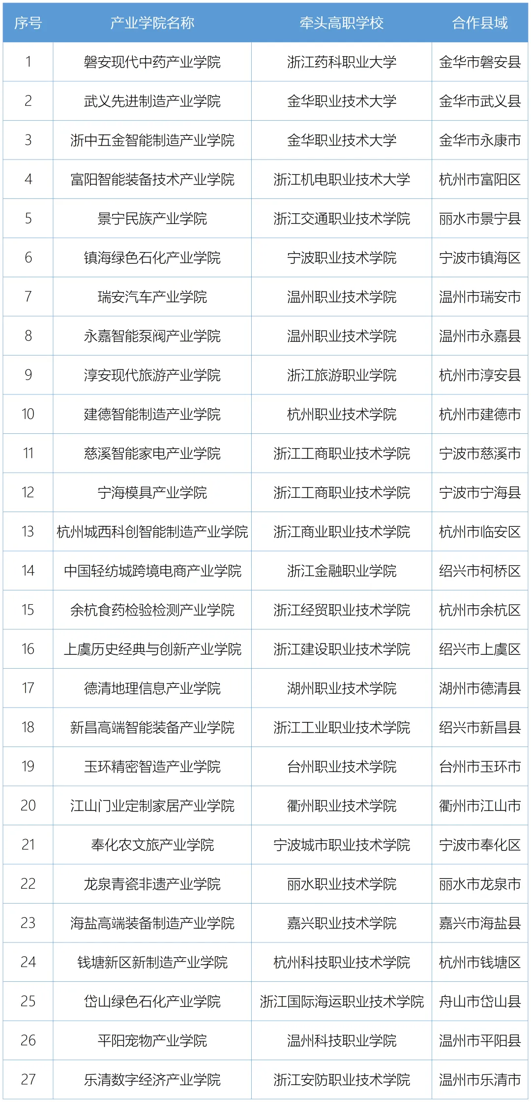 浙江省首批縣域產(chǎn)業(yè)學院立項建設名單