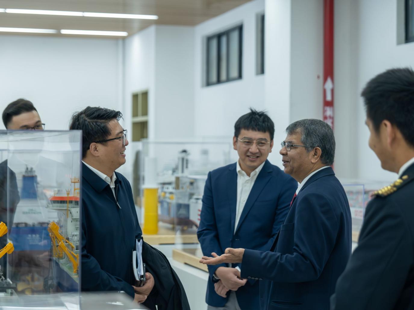 在泉州海洋職業(yè)學(xué)院校長(zhǎng)莊偉廉、副校長(zhǎng)陳永鑫的陪同下,馬來(lái)西亞林肯大學(xué)校長(zhǎng)Dr. Amiya Bhaumik、聯(lián)合國(guó)協(xié)會(huì)全球大使、林肯大學(xué)創(chuàng)新與可持續(xù)發(fā)展學(xué)院院長(zhǎng)Dr. Zoensek Lea和國(guó)際經(jīng)濟(jì)技術(shù)與產(chǎn)業(yè)創(chuàng)新協(xié)作平臺(tái)常務(wù)董事陳凌峰等一行代表團(tuán)實(shí)地參觀了泉州海洋職業(yè)學(xué)院華為人工智能實(shí)訓(xùn)中心、世界特種船舶展示廳、360°船舶操縱實(shí)訓(xùn)室等特色教學(xué)場(chǎng)景,并對(duì)該校先進(jìn)的教學(xué)設(shè)施與產(chǎn)教融合成果給予高度評(píng)價(jià)。