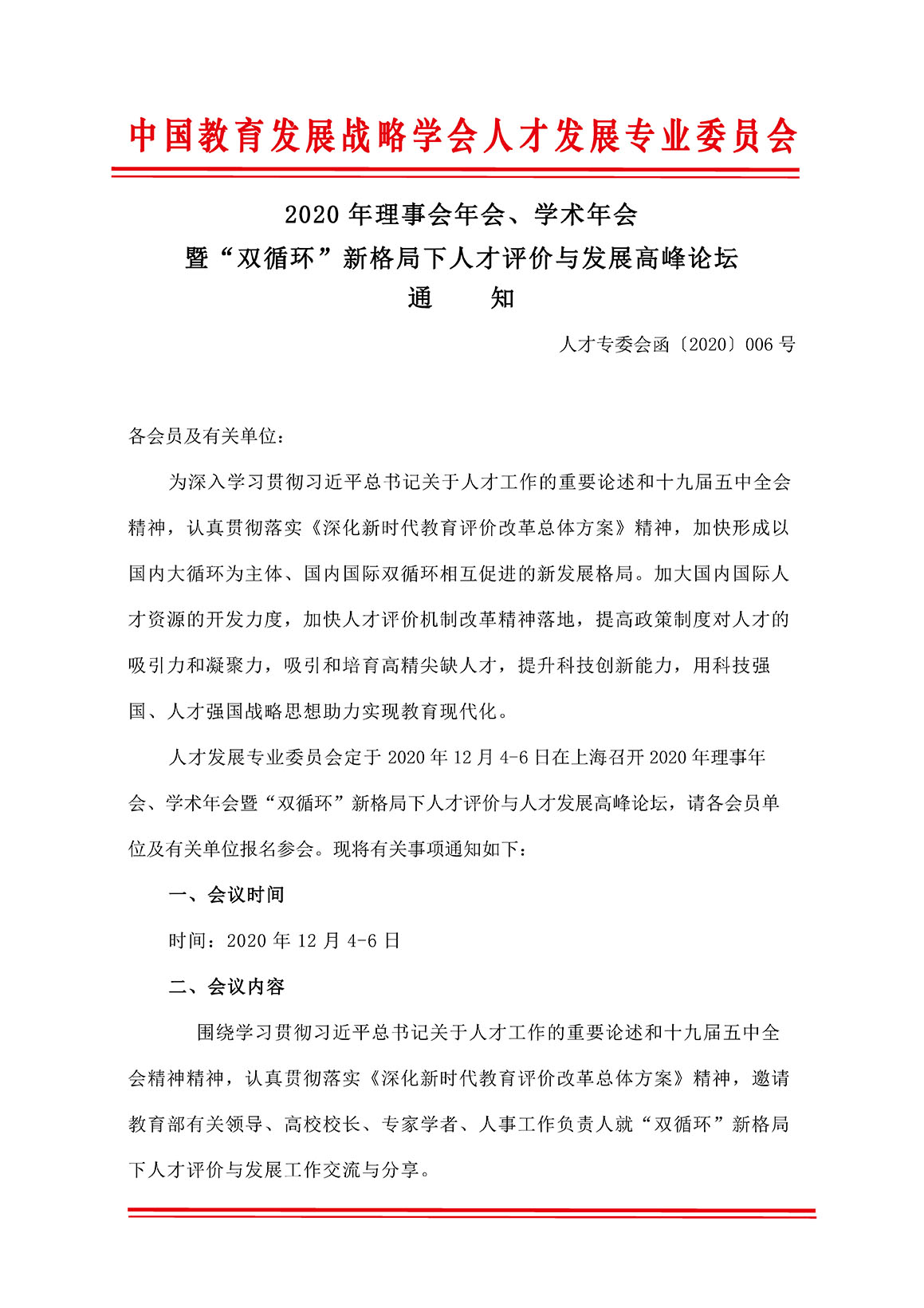 暨“雙循環(huán)”新格局下人才評價(jià)與發(fā)展高峰論壇通知