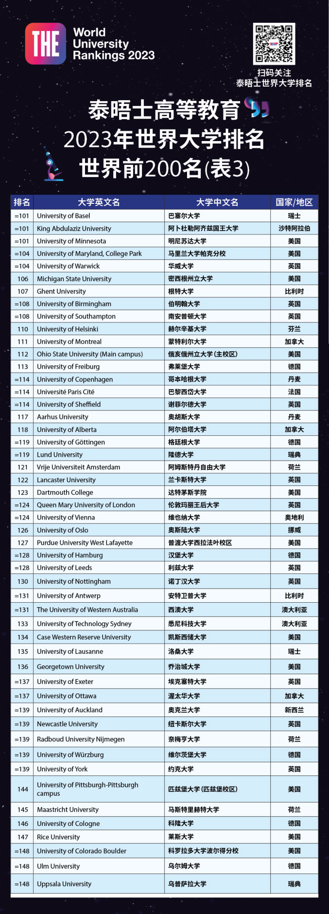 2023年的排名中共有來自104個國家/地區(qū)的1799所大學(xué)上榜,較去年增加了137所,創(chuàng)歷史新高。