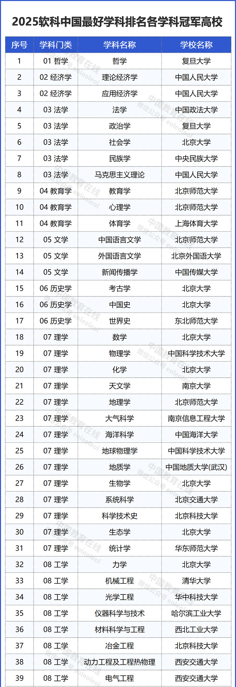 2025軟科中國最好學(xué)科排名發(fā)布,各學(xué)科冠軍高校名單出爐
