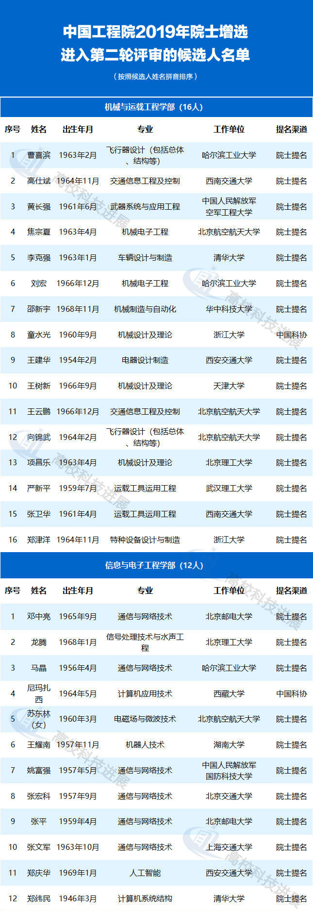 附:中國工程院2019年院士增選進(jìn)入第二輪評審的高校候選人名單