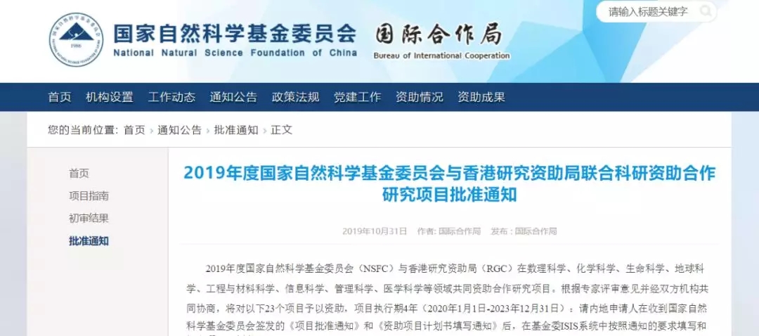 日前,國家自然科學(xué)基金委員會(huì)、港澳臺(tái)事務(wù)辦公室聯(lián)合印發(fā)通知,正式對(duì)外發(fā)布了“2019年度國家自然科學(xué)基金委員會(huì)與香港研究資助局聯(lián)合科研資助合作研究項(xiàng)目”(以下簡稱“聯(lián)合資助合作項(xiàng)目”)名單。
