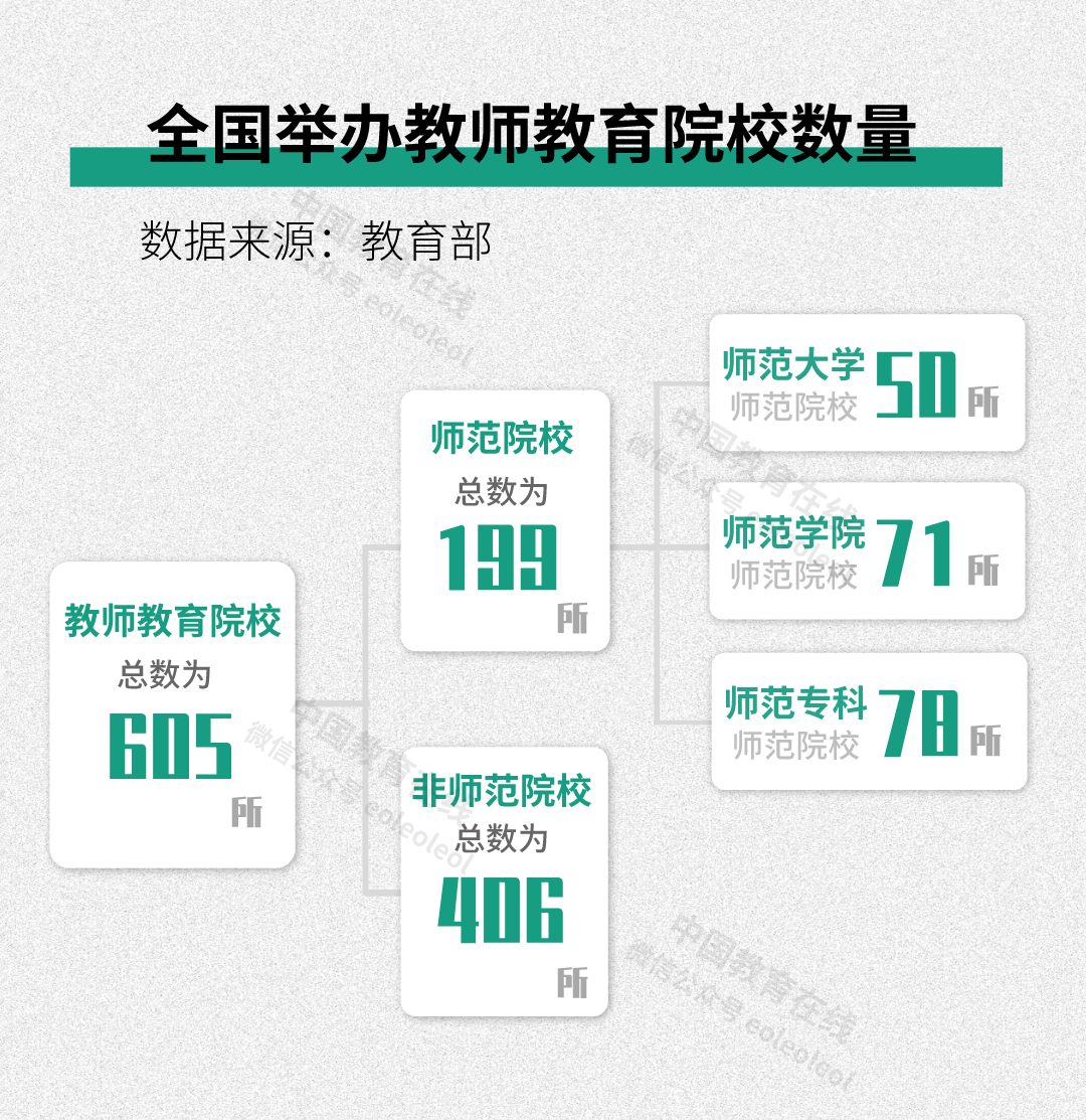 教師是教育事業(yè)改革發(fā)展第一資源,師范教育是培養(yǎng)教師的主陣地、主渠道,師范強則教師強,教師強則教育強。根據(jù)教育部2019年公布的數(shù)據(jù)顯示,全國共有舉辦教師教育院校605所,其中高等師范院校199所,舉辦師范教育的非師范院校406所。