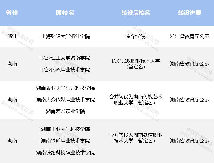 部分高校轉(zhuǎn)設(shè)申請已獲省級教育廳公示