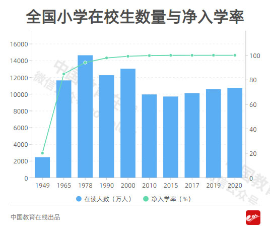 小學(xué)從建國時期入學(xué)率20%到2020年達到99.96%
