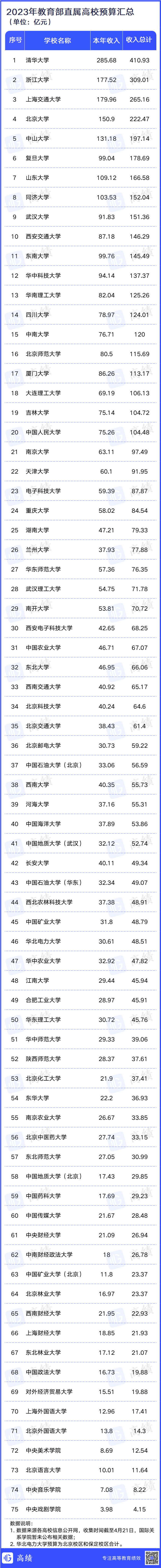 據(jù)統(tǒng)計(jì),教育部直屬高校中共有20所高校,2023年度部門預(yù)算超過百億,相比2022年增加了5所。