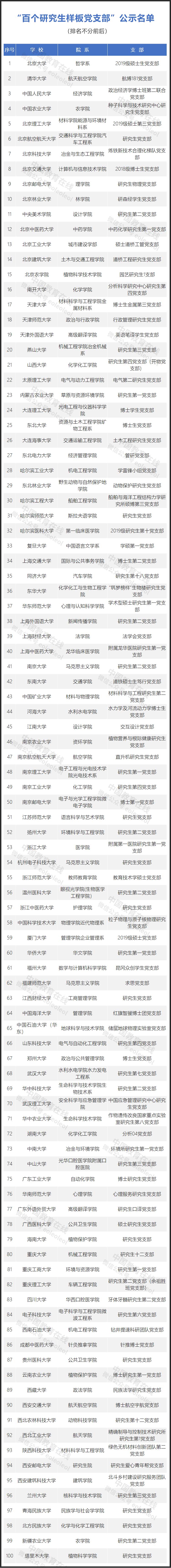 第二批全國(guó)高校“百個(gè)研究生樣板黨支部”和 “百名研究生黨員標(biāo)兵”名單公示