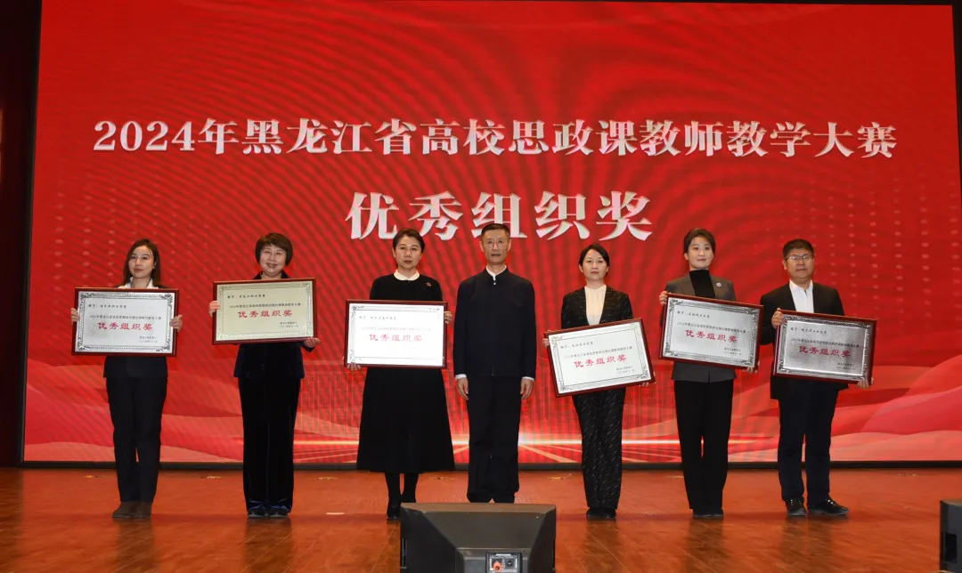 活動中,為5所黑龍江省首批高等職業(yè)學(xué)校特色馬克思主義學(xué)院(思政課教研部)進(jìn)行授牌,為2024年全省高校思政課教師教學(xué)大賽獲獎教師代表和“優(yōu)秀組織獎”獲獎高校頒發(fā)證書和獎牌。