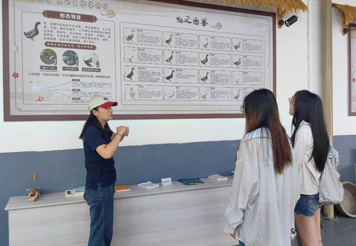 非遺工坊負(fù)責(zé)人馬曉宇、非遺傳承人馬兆凱為實(shí)踐團(tuán)成員講解南京板鴨、鹽水鴨的相關(guān)知識(shí)。 趙悅彤供圖