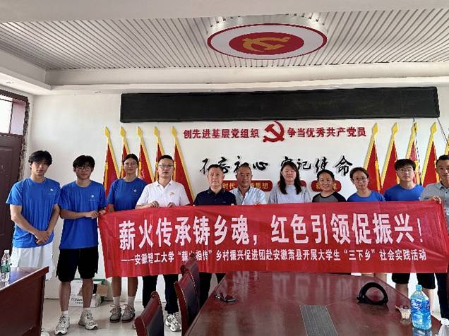 在國(guó)家“百校聯(lián)百縣興千村”的行動(dòng)號(hào)召下,近日,安徽理工大學(xué)力學(xué)與光電物理學(xué)院“薪火相傳”鄉(xiāng)村振興實(shí)踐團(tuán)師生奔赴安徽省宿州市蕭縣開(kāi)展了一場(chǎng)融合紅色尋訪與產(chǎn)業(yè)調(diào)研的“三下鄉(xiāng)”暑期社會(huì)實(shí)踐。期間,實(shí)踐團(tuán)成員先后深入丁里鎮(zhèn)蔡洼村、丁里鎮(zhèn)郭莊村、白土鎮(zhèn)張村等地,實(shí)地走訪了蔡洼淮海戰(zhàn)役總前委舊址、郭莊知青園、王寨鎮(zhèn)退役軍人服務(wù)站等紅色文化基地,詳細(xì)調(diào)研了蘆筍生產(chǎn)基地、葡堤原鄉(xiāng)、廣順白羊養(yǎng)殖合作社等七彩產(chǎn)業(yè)園區(qū)。通過(guò)實(shí)地考察、深度訪談與親身體驗(yàn)相結(jié)合的方式,實(shí)踐團(tuán)感悟紅色精神賡續(xù),探索蕭縣振興路徑,以青春活力賦能鄉(xiāng)村振興。
