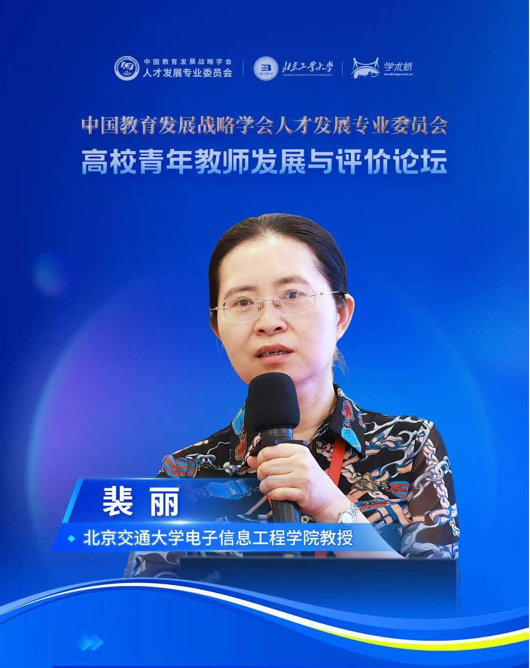 2025年7月16日,由中國(guó)教育發(fā)展戰(zhàn)略學(xué)會(huì)人才發(fā)展專業(yè)委員會(huì)(以下簡(jiǎn)稱“人才發(fā)展專委會(huì)”)主辦、北京工業(yè)大學(xué)承辦、中國(guó)教育在線·學(xué)術(shù)橋協(xié)辦的“高校青年教師發(fā)展與評(píng)價(jià)論壇”在北京工業(yè)大學(xué)順利舉辦。論壇期間,圍繞高校青年教師隊(duì)伍建設(shè)、發(fā)展與評(píng)價(jià)改革等話題,北京交通大學(xué)電子信息工程學(xué)院教授裴麗接受了人才發(fā)展專委會(huì)的現(xiàn)場(chǎng)采訪。