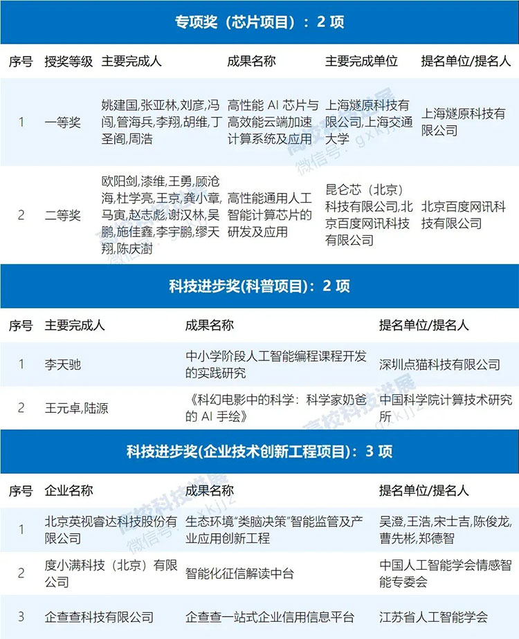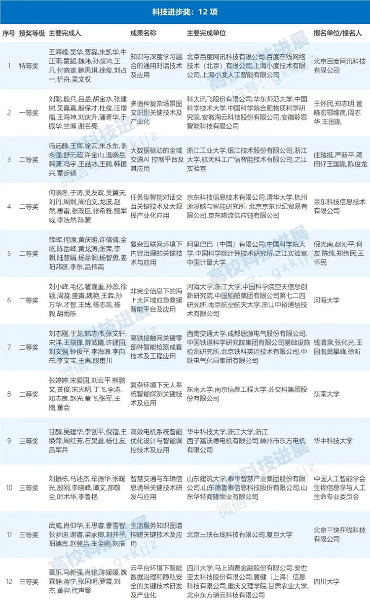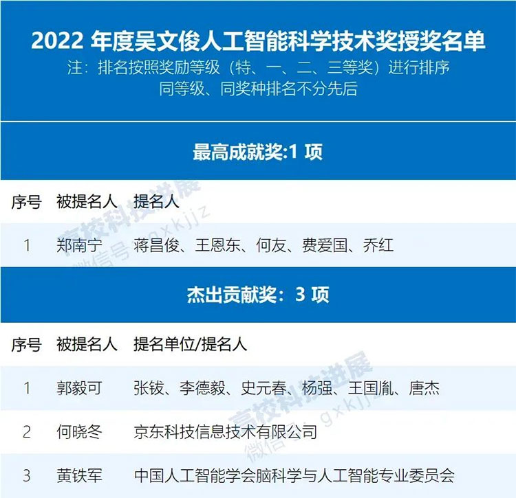 據(jù)悉,2022年度“吳文俊人工智能科學(xué)技術(shù)獎”共評出60個獲獎項目成果,包括吳文俊人工智能最高成就獎1項、吳文俊人工智能杰出貢獻獎3項、吳文俊人工智能自然科學(xué)獎4項、吳文俊人工智能技術(shù)發(fā)明獎4項、吳文俊人工智能科技進步獎12項、吳文俊人工智能科技進步獎企業(yè)技術(shù)創(chuàng)新工程項目3項、吳文俊人工智能科技進步獎科普項目2項、吳文俊人工智能優(yōu)秀青年獎15項、吳文俊人工智能專項獎芯片項目2項、吳文俊人工智能優(yōu)秀博士學(xué)位論文獲獎?wù)撐?項、吳文俊人工智能優(yōu)秀博士學(xué)位論文提名論文5項。