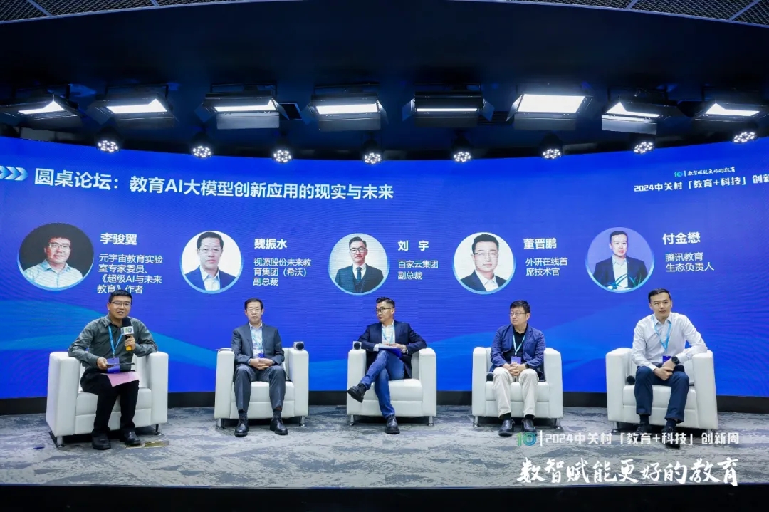 在“教育AI大模型創(chuàng)新應用的現(xiàn)實與未來”圓桌論壇環(huán)節(jié),視源股份未來教育集團(希沃)副總裁魏振水,百家云集團副總裁劉宇,外研在線首席技術(shù)官董晉鵬,騰訊教育生態(tài)負責人付金懋分別就教育大模型的應用、教育大模型的核心特點與未來發(fā)展趨勢、教育生態(tài)服務者的責任等一系列問題展開探討。在“百模大戰(zhàn)”的時代背景下,教育專屬大模型的應用與實踐始終是行業(yè)關(guān)注的重點。面向未來,教育大模型應進一步保障數(shù)據(jù)的時效性、合規(guī)性和安全性,助力個性化學習和因材施教,促進拔尖創(chuàng)新人才培養(yǎng)。教育科技產(chǎn)品的研發(fā)和應用要緊跟國家政策引導,政產(chǎn)學研用深度協(xié)同,推進教育、科技、人才“三位一體”協(xié)同融合發(fā)展。元宇宙教育實驗室專家委員,《超級AI與未來教育》作者李駿翼主持圓桌論壇。