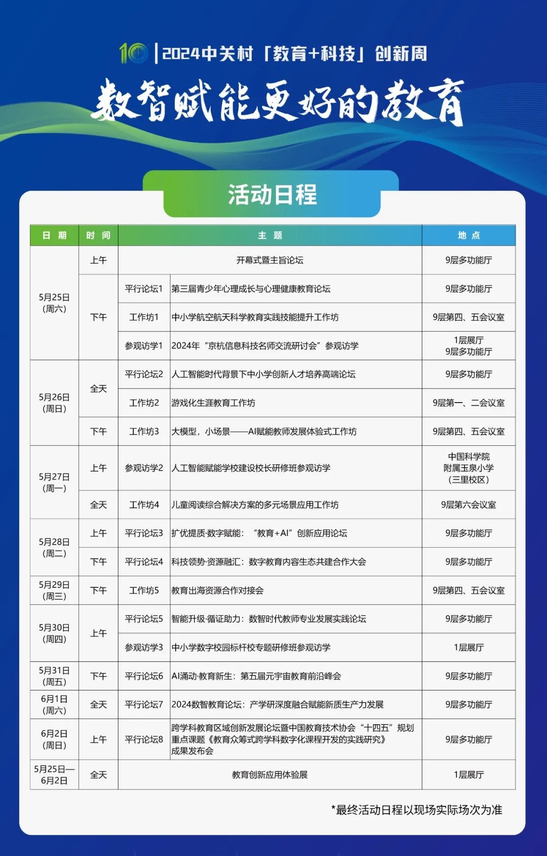 活動將從5月25日至6月2日持續(xù)舉辦,活動形式包括開幕式暨主旨論壇、平行論壇、教育工作坊、參觀訪學、教育創(chuàng)新應用體驗展等,內(nèi)容涵蓋人工智能教育應用、學校育人模式創(chuàng)新、數(shù)字教育內(nèi)容建設、青少年心理健康、教師數(shù)字素養(yǎng)提升、產(chǎn)教融合發(fā)展等話題。
