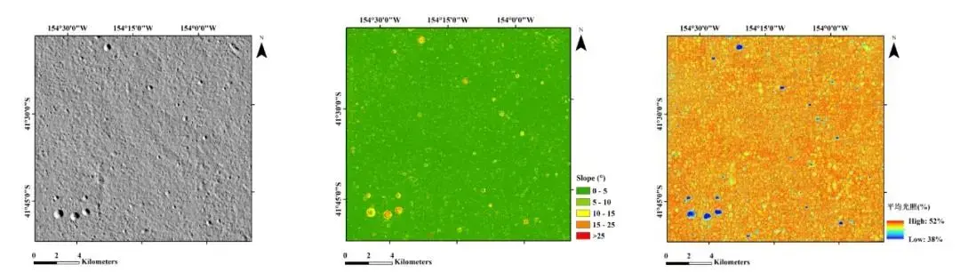 嫦娥六號(hào)著陸區(qū)附近1.5米高分辨率三維地形、坡度和光照?qǐng)D