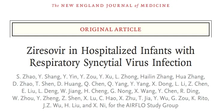 近日,華西二院劉瀚旻教授聯(lián)合多位專家在The New England Journal of Medicine上發(fā)表題目為Ziresovir in Hospitalized Infants with Respiratory Syncytial Virus Infection的研究成果。此研究是NEJM發(fā)表的首個中國自主研發(fā)的兒童創(chuàng)新藥臨床研究,也是全球首個治療RSV病毒感染靶向藥的III期臨床試驗(yàn)結(jié)果。首都醫(yī)科大學(xué)附屬北京兒童醫(yī)院趙順英教授為文章第一作者,倪鑫教授(末位通訊)、華西二院劉瀚旻教授和愛科百發(fā)鄔征博士為共同通訊作者。
