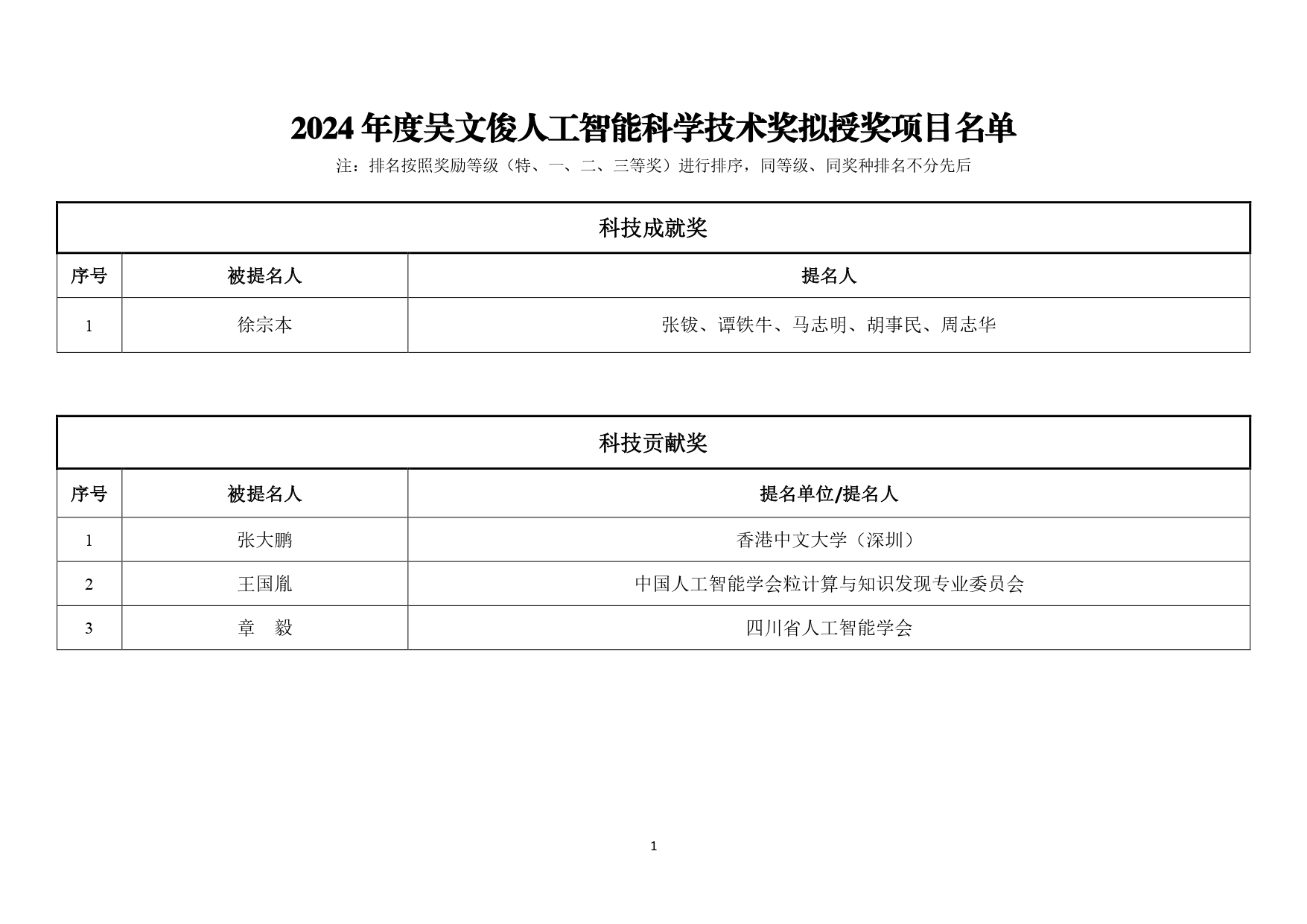 21所高校入選!2024年度吳文俊人工智能科學技術獎擬授獎項目公示