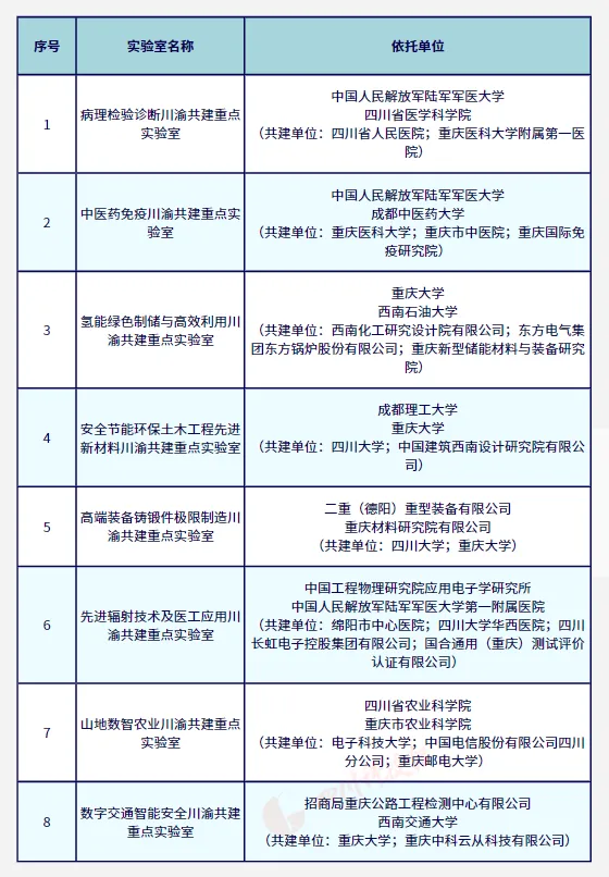 擬新建川渝共建重點(diǎn)實(shí)驗(yàn)室名單如下: