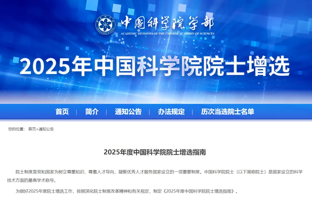 為做好2025年度院士增選工作,按照深化院士制度改革精神和有關(guān)規(guī)定,制定《2025年度中國科學(xué)院院士增選指南》。