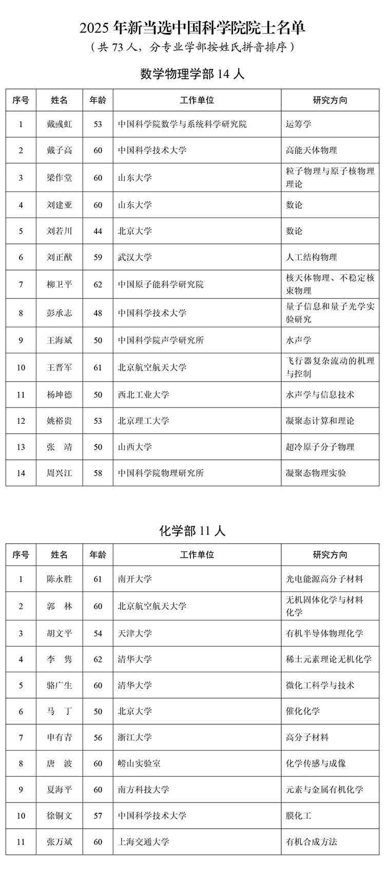根據(jù)《中國科學(xué)院院士章程》《中國科學(xué)院院士增選工作實施辦法(試行)》《中國科學(xué)院外籍院士選舉辦法》等規(guī)定,2025年中國科學(xué)院選舉產(chǎn)生了73名中國科學(xué)院院士和27名中國科學(xué)院外籍院士。