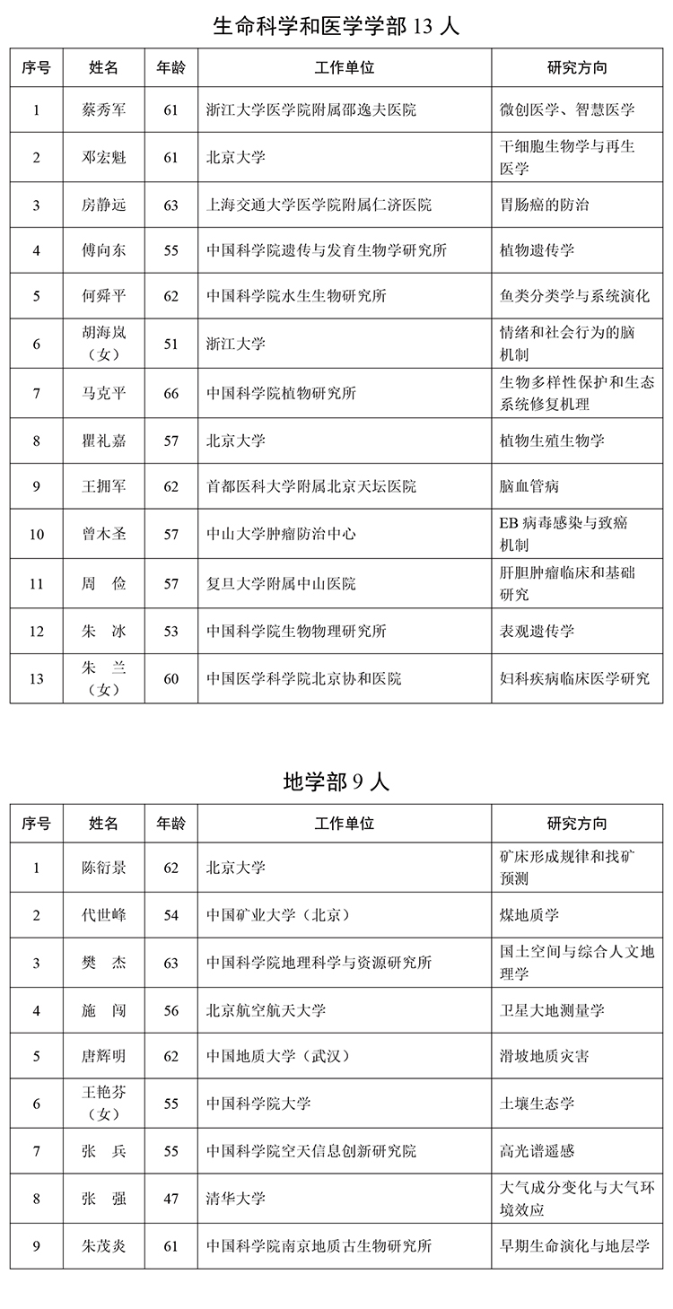 2025年中國科學(xué)院院士增選當(dāng)選院士名單
