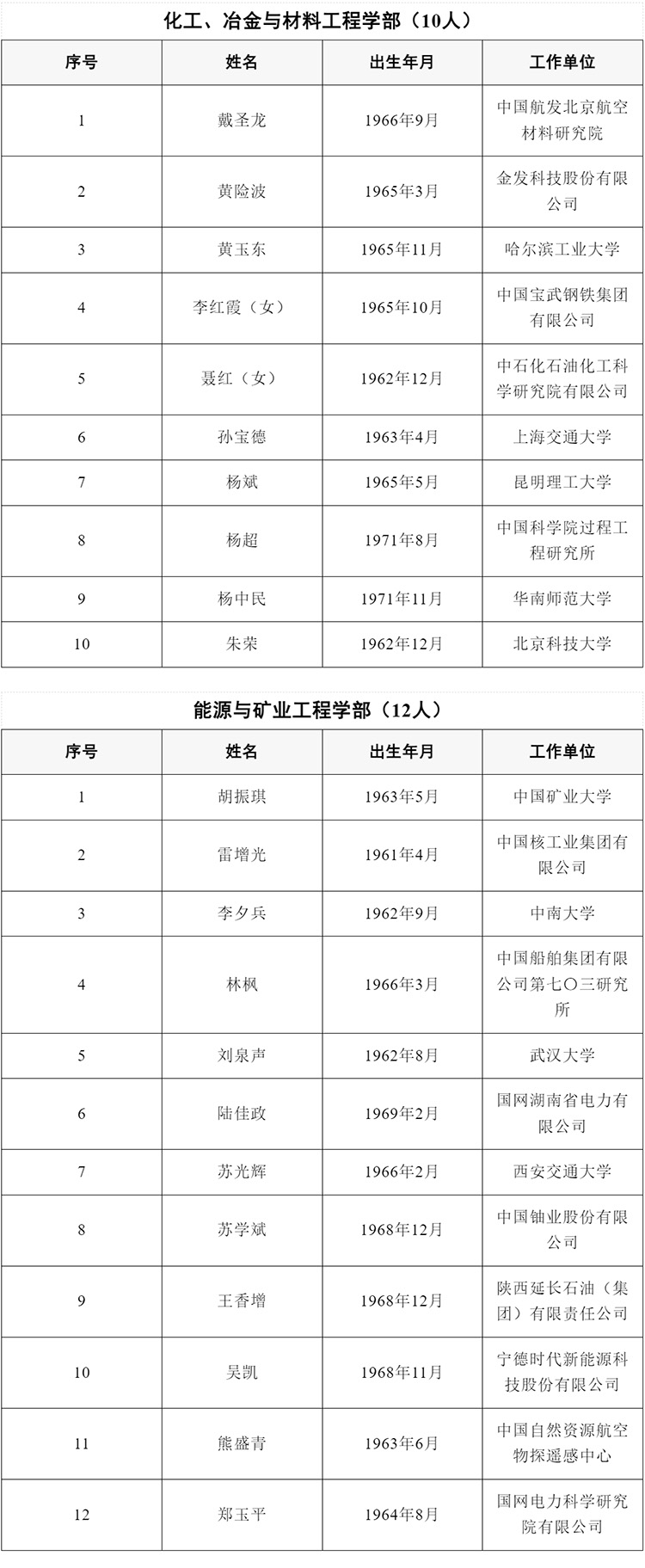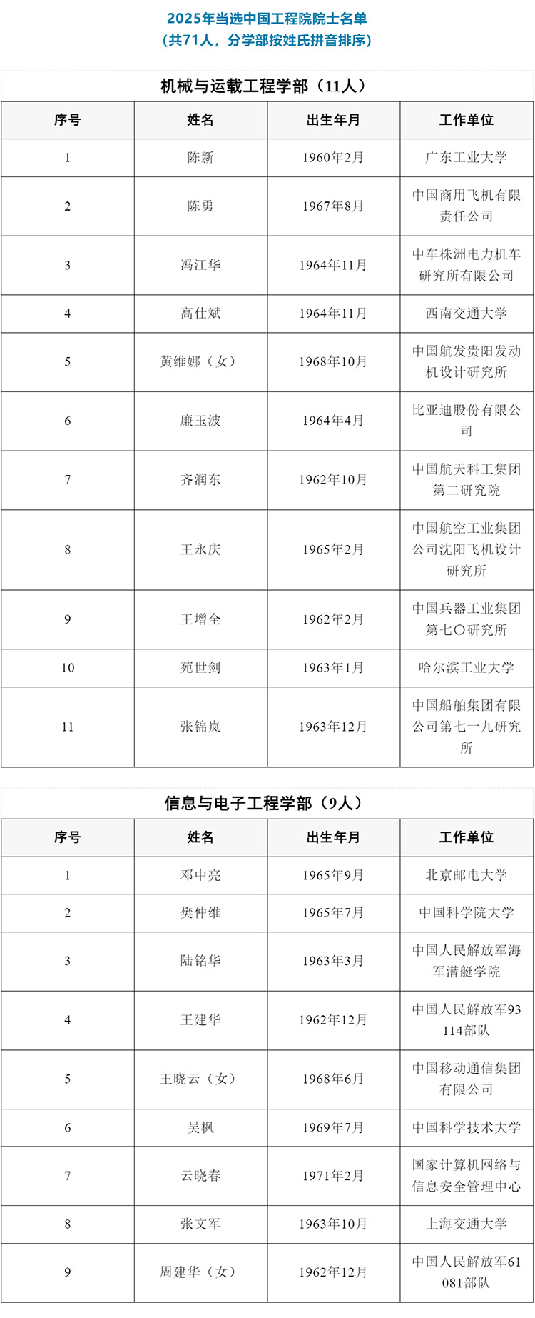 關(guān)于公布中國工程院2025年院士增選當選院士名單的公告