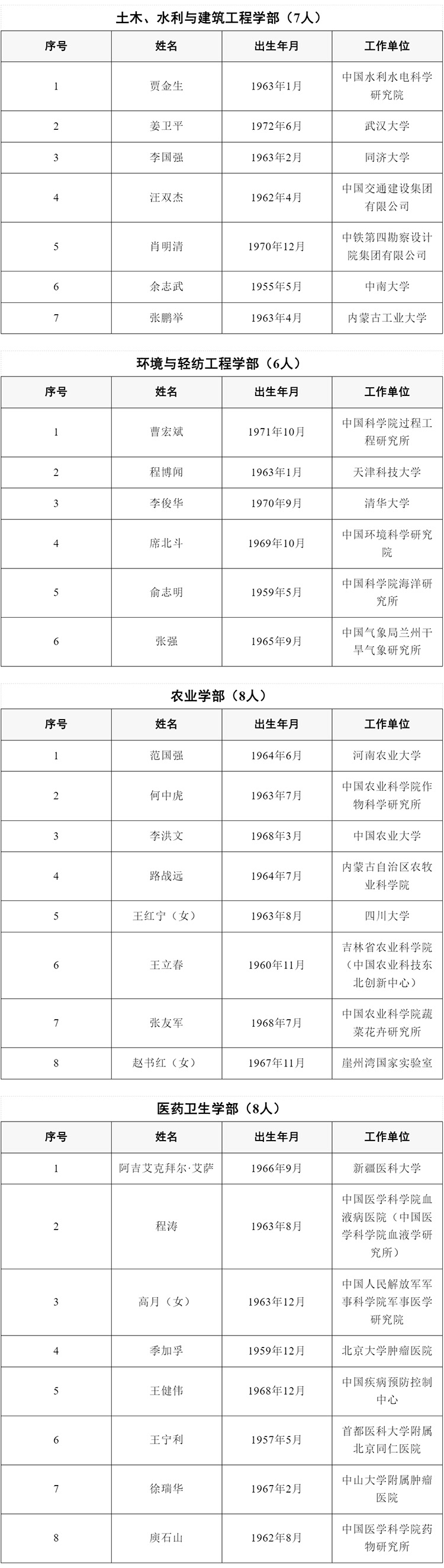 中國工程院2025年院士增選當選院士名單