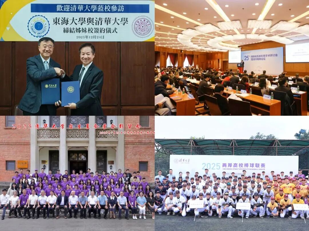 12月24日,楊斌老師率團(tuán)赴臺與東海大學(xué)簽署協(xié)議;2025兩岸關(guān)系新形勢學(xué)術(shù)研討會暨清華兩岸論壇;2025清華大學(xué)臺生夏令營開幕式合影;2025兩岸棒球聯(lián)賽合影