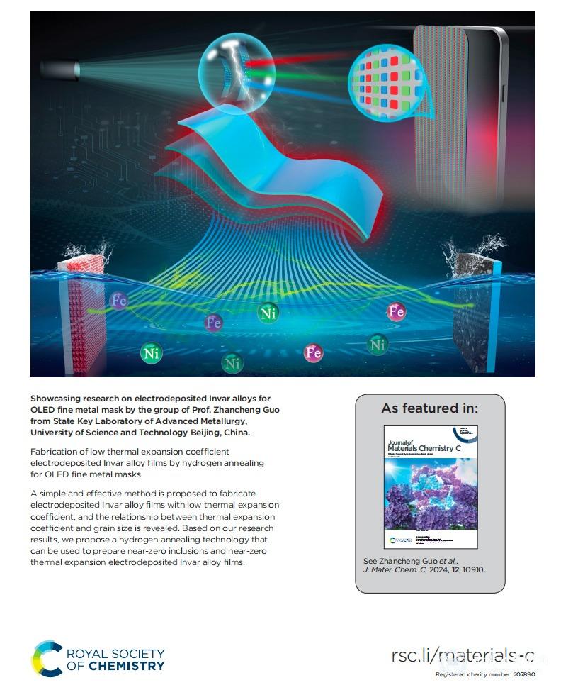 近日,北京科技大學(xué)綠色低碳鋼鐵冶金全國重點(diǎn)實(shí)驗(yàn)室郭占成教授團(tuán)隊(duì)在制備近零膨脹近零夾雜物因瓦合金箔方面取得重大突破,該研究成果為解決我國FMM“卡脖子”材料提供了關(guān)鍵技術(shù)基礎(chǔ)。國外Journal of Materials Chemistry C以封面論文形式發(fā)表了該研究成果,論文第一作者是博士研究生任為,通訊作者郭占成。