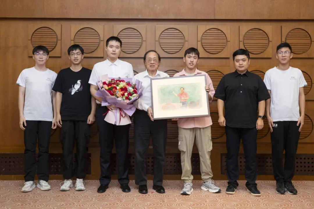 座談會(huì)上,學(xué)生代表為姚期智先生獻(xiàn)花并贈(zèng)送畫作。