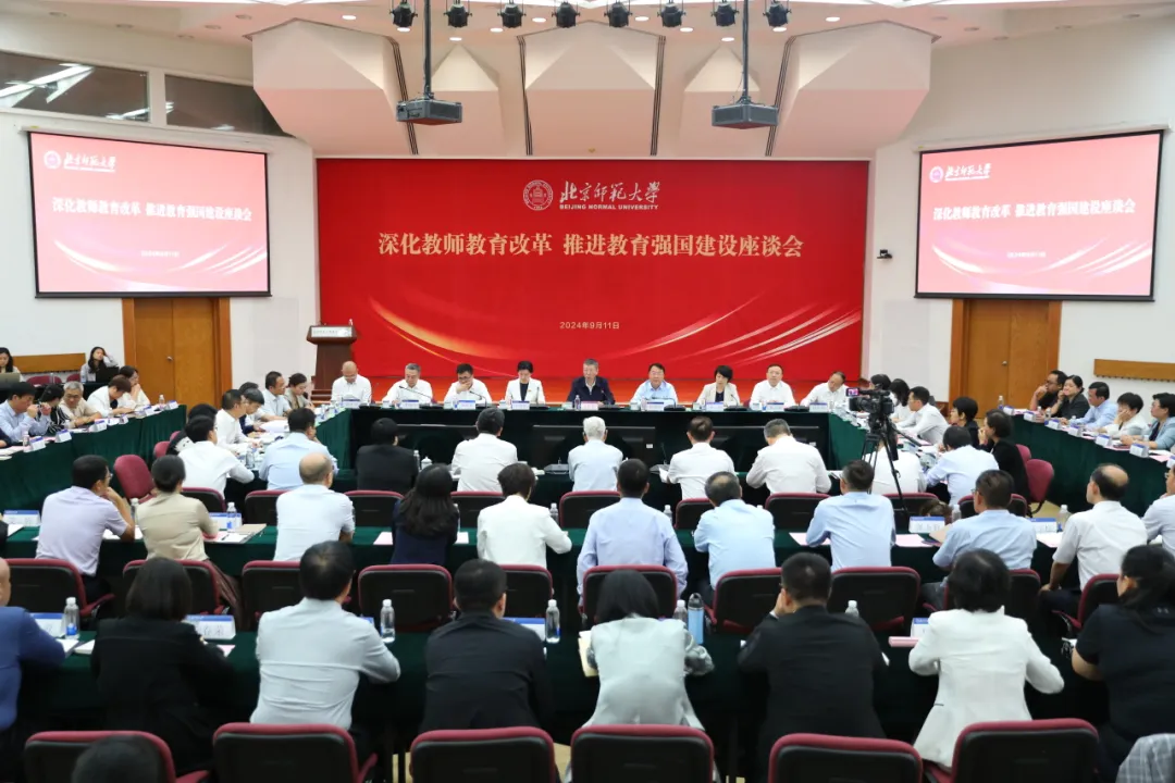 9月11日,由北京師范大學(xué)牽頭,六所部屬師范大學(xué)聯(lián)合召開“深化教師教育改革 推進(jìn)教育強(qiáng)國建設(shè)”座談會,共同探討新時代新征程上優(yōu)化教師教育發(fā)展的新路徑和加強(qiáng)教師隊伍建設(shè)的新思路新舉措。教育部黨組成員、副部長、總督學(xué)王嘉毅出席座談會并講話。北京師范大學(xué)黨委書記程建平、華東師范大學(xué)黨委書記梅兵、東北師范大學(xué)黨委書記李忠軍、華中師范大學(xué)黨委書記夏立新、陜西師范大學(xué)黨委書記李曉兵、西南大學(xué)副校長周光明作主題發(fā)言。會議由北京師范大學(xué)校長于吉紅主持,教育部教師工作司司長俞偉躍、副司長黃小華及相關(guān)處室負(fù)責(zé)人,北京師范大學(xué)部分校領(lǐng)導(dǎo)、學(xué)部院系及職能部處相關(guān)負(fù)責(zé)人參加會議。