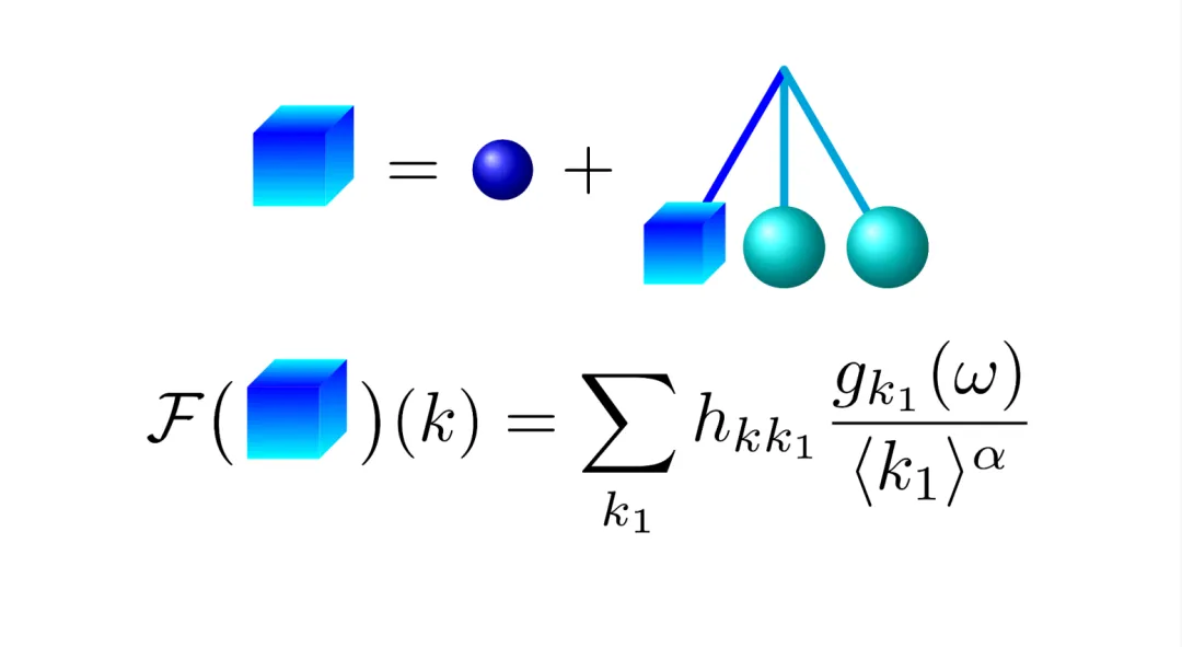 隨后,上述三位作者與合作者普林斯頓大學 B. Bringmann解決了前述第二個難題,即三維三階非線性波方程的吉布斯測度的不變性問題,成果發(fā)表在今年4月29日出版的《數(shù)學新進展》上。前述概率臨界猜想為解決該難題提供了深刻的洞見。在這篇長達 279 頁的論文中,岳海天與合作者創(chuàng)造性地運用了概率論、調(diào)和分析、數(shù)論、組合數(shù)學、偏微分方程等數(shù)學分支中的隨機量子化、擬控制理論、格點計數(shù)估計、隨機張量理論、分子圖分析等多種復(fù)雜技術(shù)工具從而證明了在吉布斯概率初值下三維三階波方程會按照既定結(jié)構(gòu)演化 (見圖2 )。