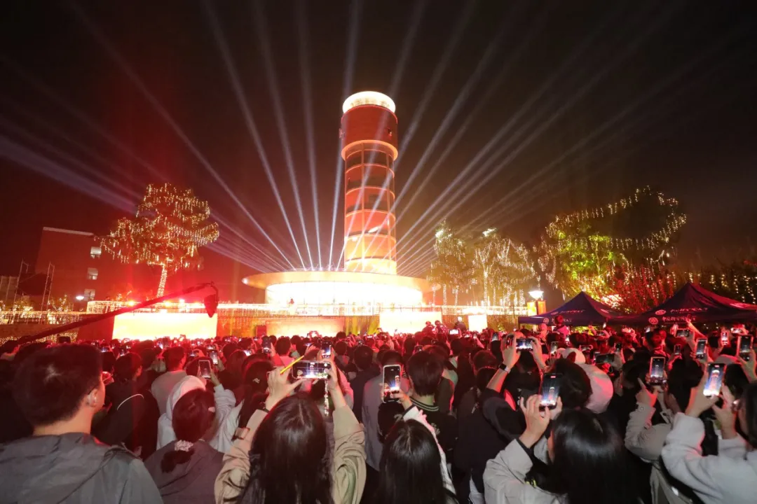 10月13日晚,國科大在雁棲湖校區(qū)舉行“兩彈一星”紀念地?zé)羲c亮儀式。