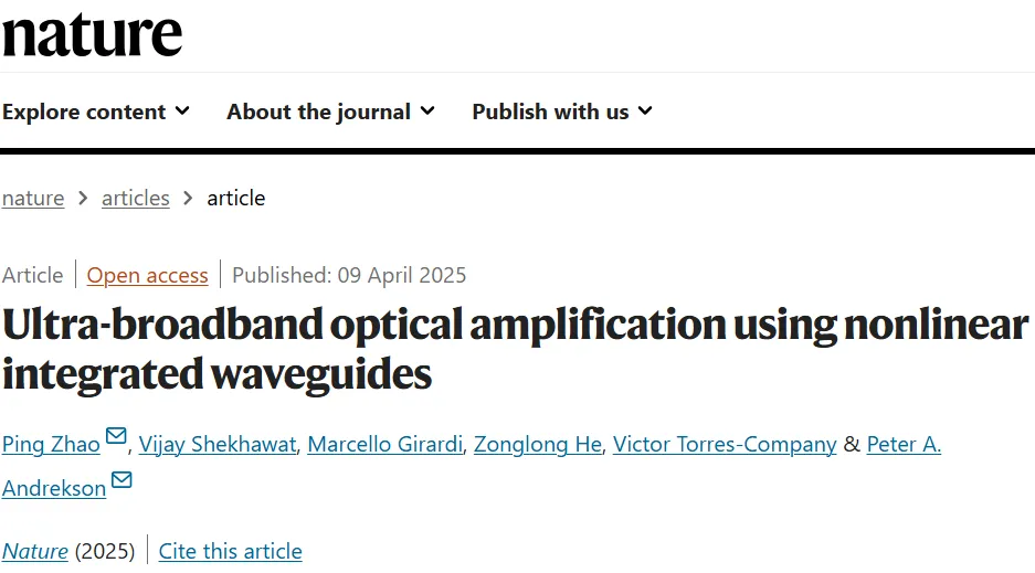 近日,四川大學(xué)電子信息學(xué)院趙平團(tuán)隊(duì)聯(lián)合瑞典查爾姆斯理工大學(xué)Peter Andrekson教授團(tuán)隊(duì),在光放大器制備領(lǐng)域取得重要進(jìn)展。相關(guān)研究以Ultra-broadband optical amplification using nonlinear integrated waveguides為題發(fā)表于Nature。四川大學(xué)趙平研究員為論文第一作者。