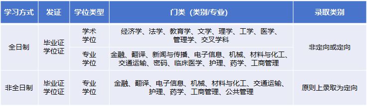 我校碩士研究生招生類別