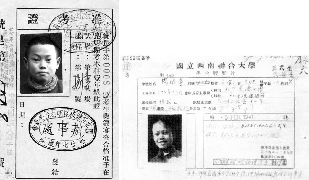 楊振寧西南聯(lián)合大學準考證(左)、學籍卡(右)