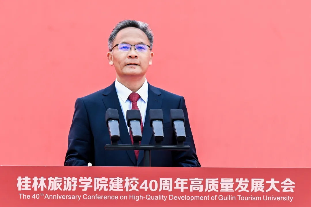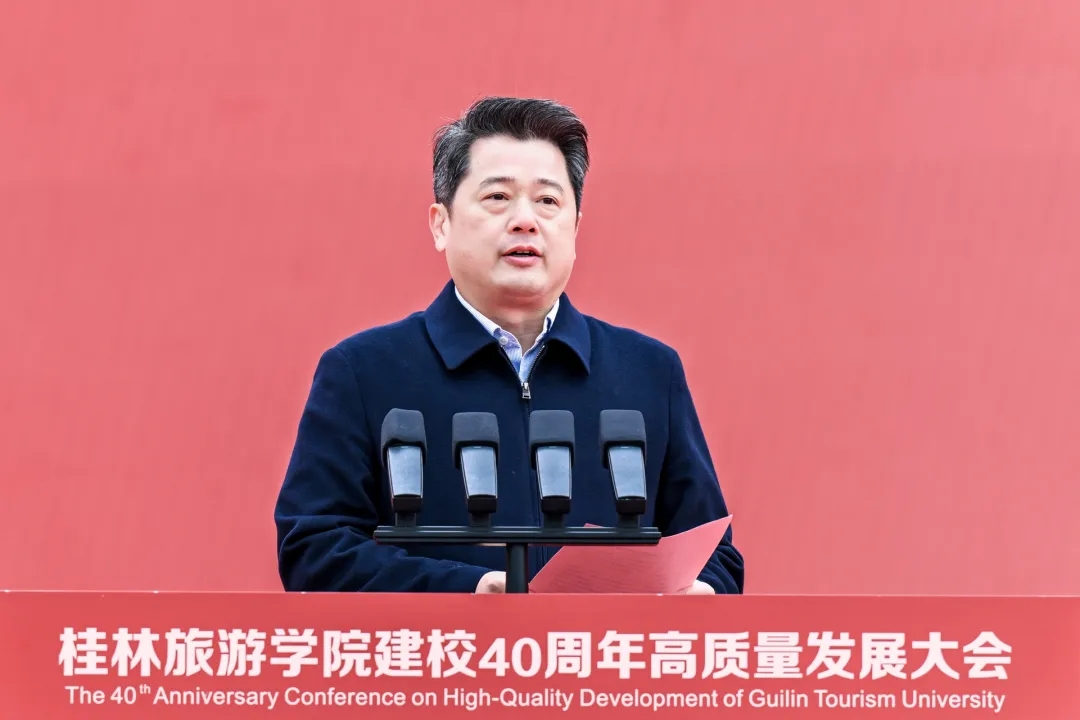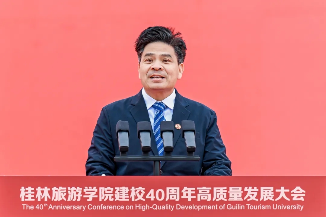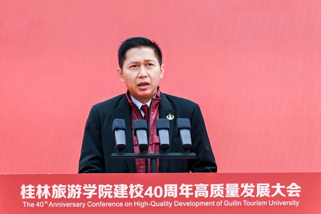 何辛幸代表自治區(qū)黨委、政府對(duì)桂林旅游學(xué)院建校40周年表示祝賀。他指出,建校40年來,桂林旅游學(xué)院在人才培養(yǎng)、科研創(chuàng)新和服務(wù)社會(huì)等多個(gè)領(lǐng)域取得豐碩成果,為地方經(jīng)濟(jì)社會(huì)發(fā)展,特別是旅游業(yè)發(fā)展作出了重要貢獻(xiàn)。他要求,桂林旅游學(xué)院要全面貫徹黨的教育方針和全國(guó)教育大會(huì)精神,落實(shí)立德樹人根本任務(wù),加強(qiáng)師資隊(duì)伍建設(shè),創(chuàng)新人才培養(yǎng)模式,不斷提高辦學(xué)質(zhì)量和水平,在服務(wù)國(guó)家戰(zhàn)略和地方發(fā)展中展現(xiàn)新作為。要全面提高人才培養(yǎng)質(zhì)量,以“十五五”規(guī)劃為統(tǒng)領(lǐng),發(fā)揮特色優(yōu)勢(shì),強(qiáng)化教育改革、科技創(chuàng)新與隊(duì)伍建設(shè),加速科研成果轉(zhuǎn)化,構(gòu)建適配且適度超前的人才培養(yǎng)體系。要積極主動(dòng)服務(wù)旅游發(fā)展大局,深度參與旅游強(qiáng)區(qū)建設(shè),力爭(zhēng)在“低空經(jīng)濟(jì)+旅游”“康養(yǎng)+旅游”“體育+旅游”等新興賽道實(shí)現(xiàn)突破,緊緊圍繞打造世界旅游目的地、桂林世界級(jí)旅游城市建設(shè)、文旅融合、鄉(xiāng)村振興等重大課題開展研究,助推全區(qū)旅游業(yè)高質(zhì)量發(fā)展。要與時(shí)俱進(jìn),擁抱人工智能時(shí)代,找準(zhǔn)優(yōu)勢(shì)賽道,充分發(fā)揮廣西旅游數(shù)據(jù)中心、廣西文化和旅游智慧技術(shù)重點(diǎn)實(shí)驗(yàn)室等平臺(tái)支撐作用,加強(qiáng)專業(yè)團(tuán)隊(duì)建設(shè),推動(dòng)人工智能在智能伴游、導(dǎo)覽等關(guān)鍵場(chǎng)景的垂直應(yīng)用,全力助推打造面向東盟的 “人工智能+文旅”新高地。