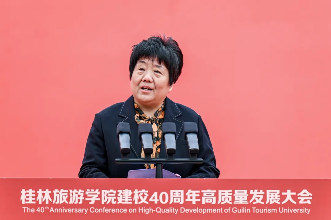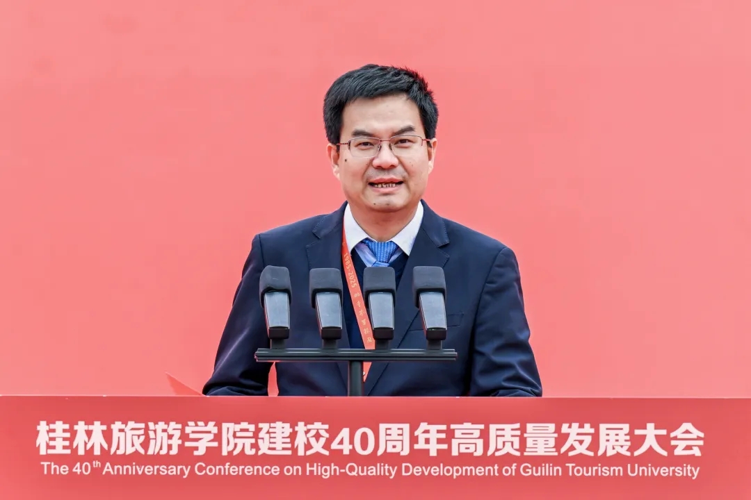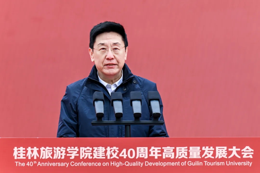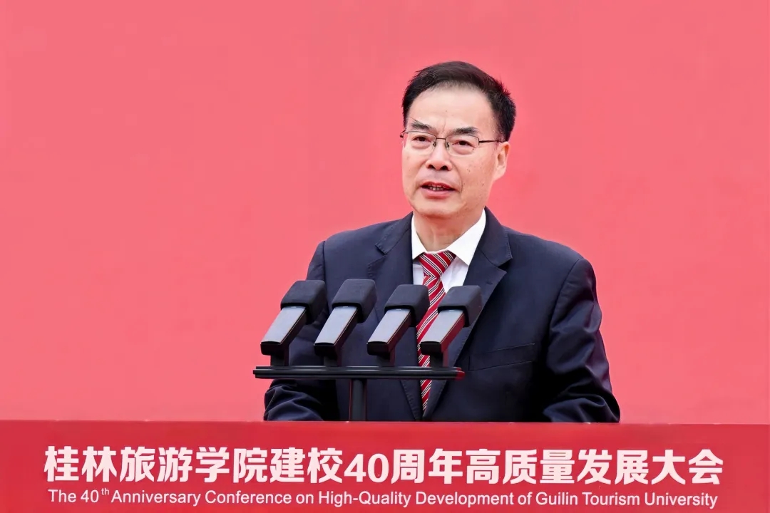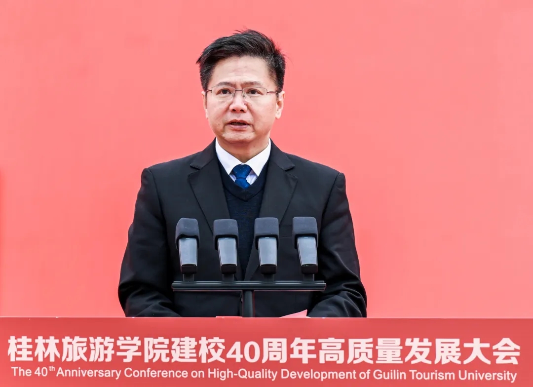何辛幸代表自治區(qū)黨委、政府對(duì)桂林旅游學(xué)院建校40周年表示祝賀。他指出,建校40年來,桂林旅游學(xué)院在人才培養(yǎng)、科研創(chuàng)新和服務(wù)社會(huì)等多個(gè)領(lǐng)域取得豐碩成果,為地方經(jīng)濟(jì)社會(huì)發(fā)展,特別是旅游業(yè)發(fā)展作出了重要貢獻(xiàn)。他要求,桂林旅游學(xué)院要全面貫徹黨的教育方針和全國(guó)教育大會(huì)精神,落實(shí)立德樹人根本任務(wù),加強(qiáng)師資隊(duì)伍建設(shè),創(chuàng)新人才培養(yǎng)模式,不斷提高辦學(xué)質(zhì)量和水平,在服務(wù)國(guó)家戰(zhàn)略和地方發(fā)展中展現(xiàn)新作為。要全面提高人才培養(yǎng)質(zhì)量,以“十五五”規(guī)劃為統(tǒng)領(lǐng),發(fā)揮特色優(yōu)勢(shì),強(qiáng)化教育改革、科技創(chuàng)新與隊(duì)伍建設(shè),加速科研成果轉(zhuǎn)化,構(gòu)建適配且適度超前的人才培養(yǎng)體系。要積極主動(dòng)服務(wù)旅游發(fā)展大局,深度參與旅游強(qiáng)區(qū)建設(shè),力爭(zhēng)在“低空經(jīng)濟(jì)+旅游”“康養(yǎng)+旅游”“體育+旅游”等新興賽道實(shí)現(xiàn)突破,緊緊圍繞打造世界旅游目的地、桂林世界級(jí)旅游城市建設(shè)、文旅融合、鄉(xiāng)村振興等重大課題開展研究,助推全區(qū)旅游業(yè)高質(zhì)量發(fā)展。要與時(shí)俱進(jìn),擁抱人工智能時(shí)代,找準(zhǔn)優(yōu)勢(shì)賽道,充分發(fā)揮廣西旅游數(shù)據(jù)中心、廣西文化和旅游智慧技術(shù)重點(diǎn)實(shí)驗(yàn)室等平臺(tái)支撐作用,加強(qiáng)專業(yè)團(tuán)隊(duì)建設(shè),推動(dòng)人工智能在智能伴游、導(dǎo)覽等關(guān)鍵場(chǎng)景的垂直應(yīng)用,全力助推打造面向東盟的 “人工智能+文旅”新高地。