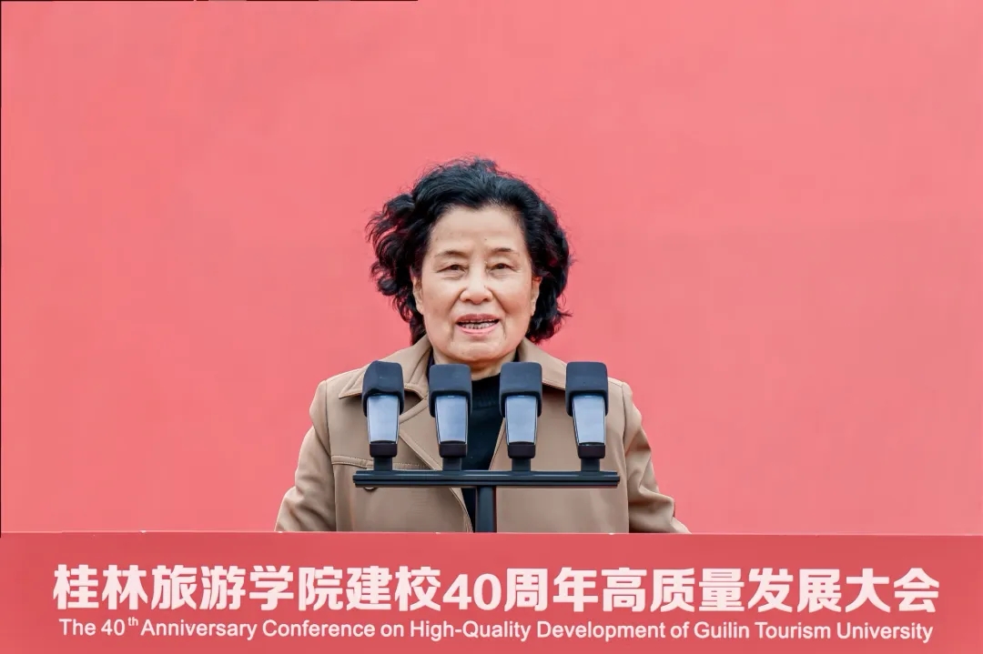 袁鳳蘭以學(xué)校首任校長(zhǎng)的身份,深情回顧了桂林旅游學(xué)院的創(chuàng)校歷程。她表示,學(xué)校從無到有,凝聚了一代代開拓者的心血與奮斗。她向所有參與學(xué)校建設(shè)的同仁表示感謝,并指出,當(dāng)前正處于加快建設(shè)旅游強(qiáng)國(guó)、廣西世界旅游目的地、桂林世界級(jí)旅游城市的時(shí)期。她希望,桂林旅游學(xué)院繼續(xù)發(fā)揚(yáng)優(yōu)良傳統(tǒng),培養(yǎng)更多高素質(zhì)旅游人才,為推動(dòng)中國(guó)旅游事業(yè)與地方經(jīng)濟(jì)社會(huì)高質(zhì)量發(fā)展作出新的更大貢獻(xiàn)。