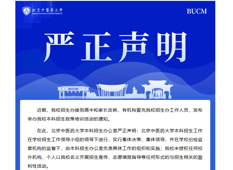 對(duì)此,北京中醫(yī)藥大學(xué)本科招生辦公室嚴(yán)正聲明: