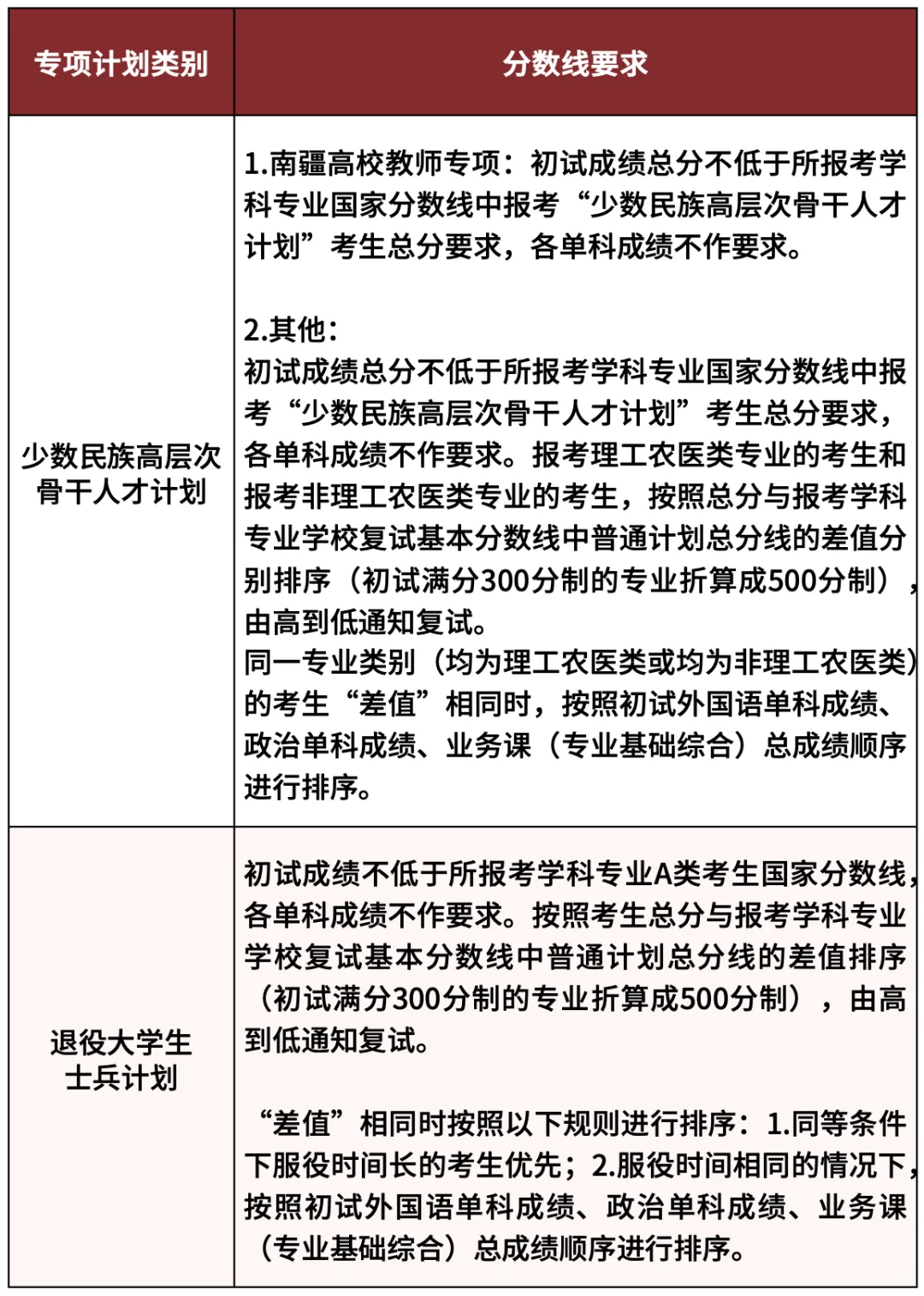 二、專項(xiàng)計(jì)劃初試成績基本要求