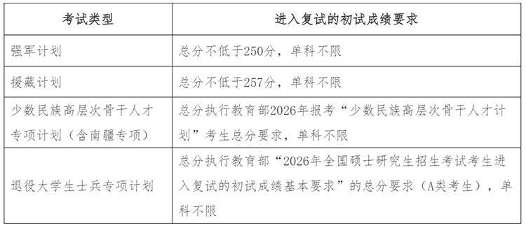 2026年吉林大學碩士研究生招生考試考生進入復試的初試成績基本要求