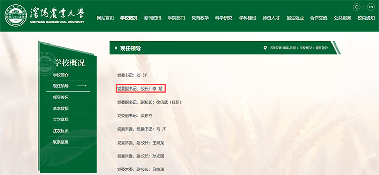 近日,沈陽農業(yè)大學官網“現任領導”欄目變更顯示,李斌已任沈陽農業(yè)大學黨委副書記、校長。公開報道顯示,沈陽農業(yè)大學上一任校長為陳啟軍,于2018年初上任,2024年初卸任。此后,沈陽農業(yè)大學校長職務空缺至今。