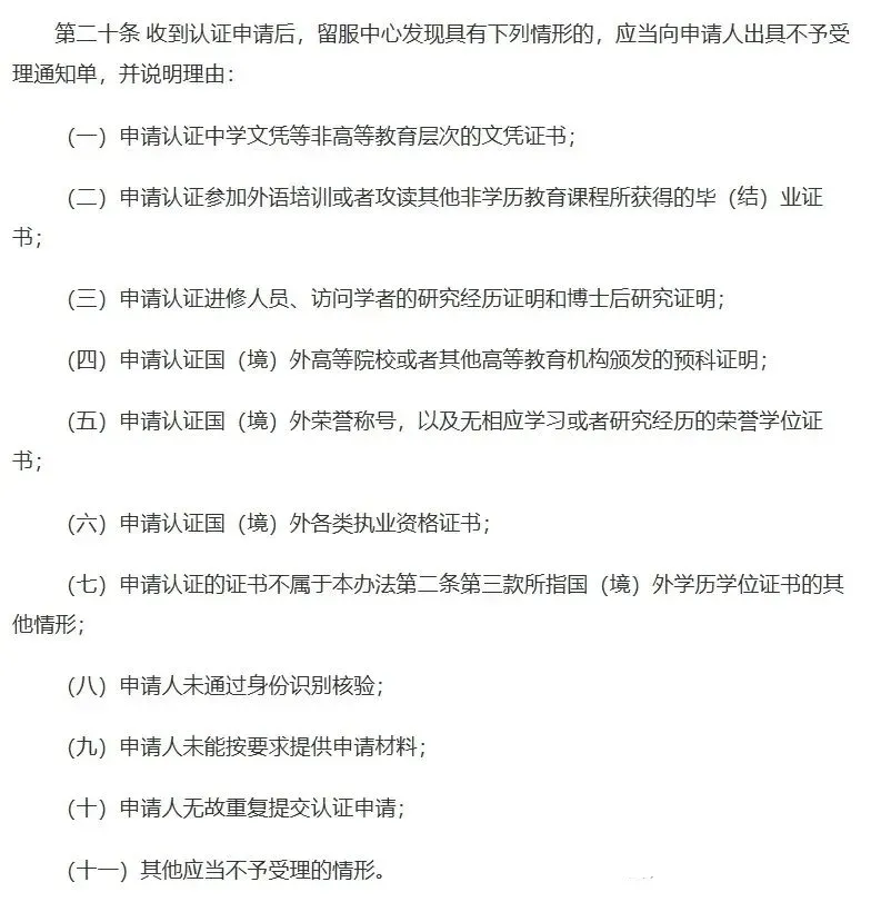 教育部留學(xué)服務(wù)中心同時公布了11種認(rèn)證失敗情形,其中重點(diǎn)是對水碩的處理,具體包括: