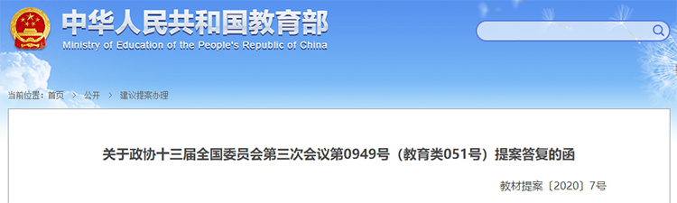 關于政協(xié)十三屆全國委員會第三次會議第0949號(教育類051號)提案答復的函