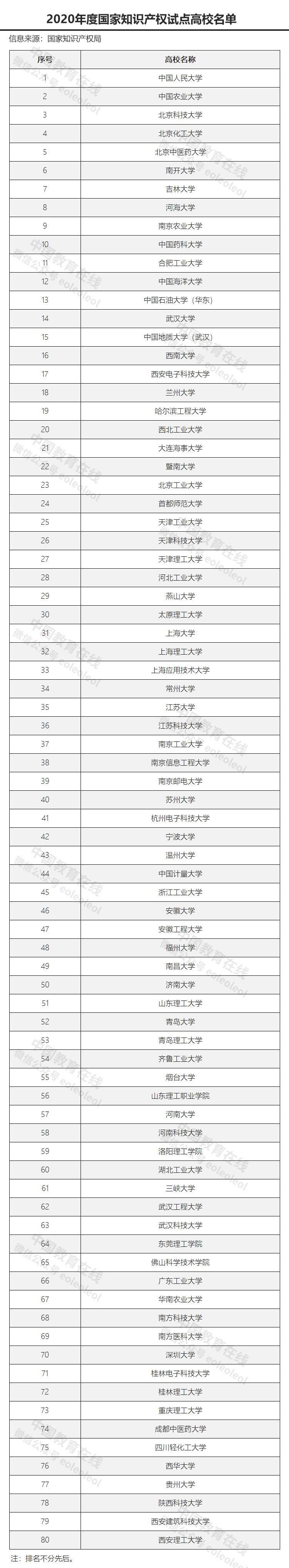附:2020年度國家知識產(chǎn)權(quán)試點示范高校名單