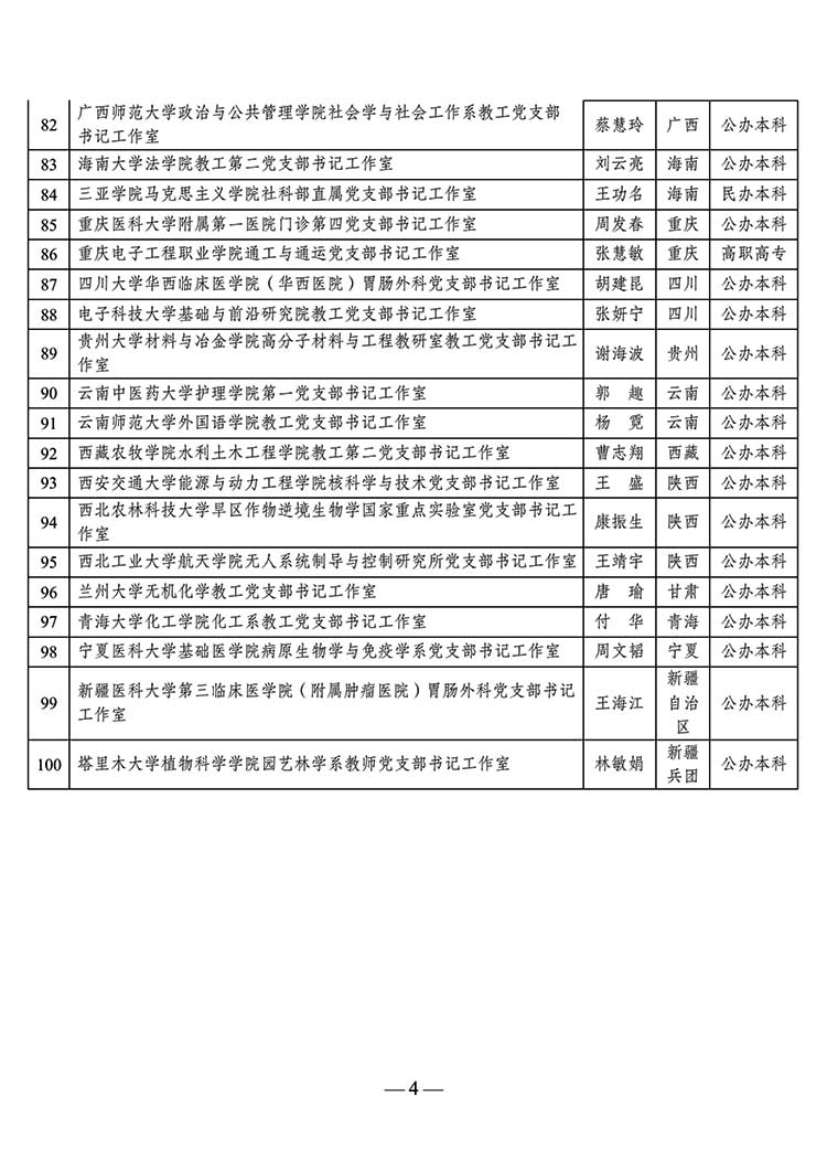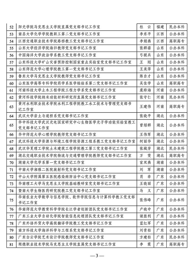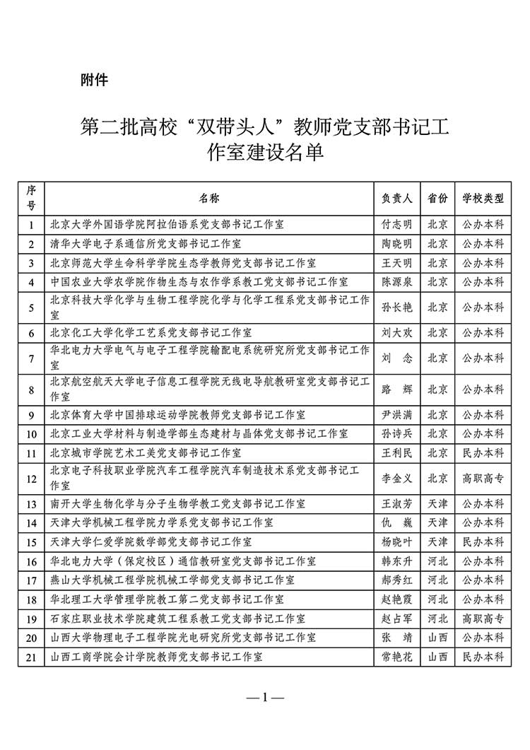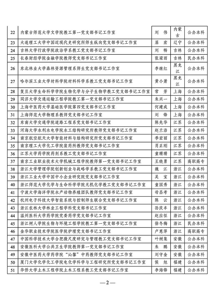 教育部公示第二批高?!半p帶頭人”教師黨支部書記工作室建設(shè)名單